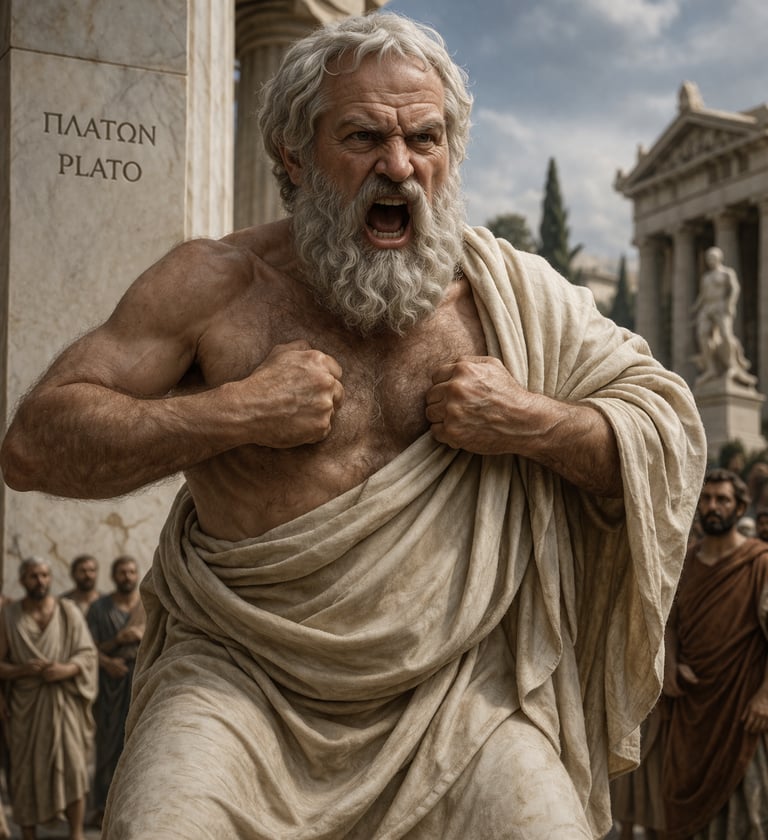 And so we leave Plato—grateful for his gift, wary of his shadow. He remains the weirdo who named the Good, but also the man who condemned the flesh. His philosophy set the pattern of our civilization: repression as fuel. Ours must set another: honesty as fuel, eros as fire: philosophy reconciled to the ape, with the Form of the Good at the top of mind—right alongside our fundament: at the bottom.